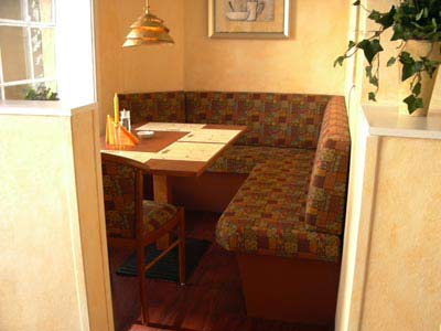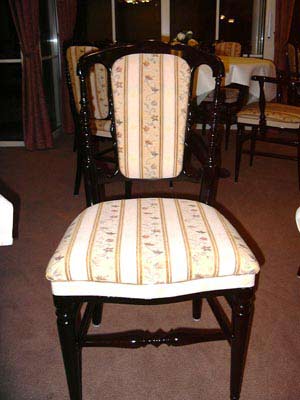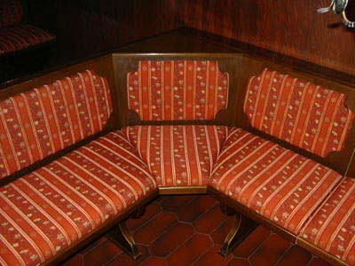 Beziehen einer Sitzpolsterplatte für einfache Gastronomiestühle incl. neuem Schaumstoff u. Objekt-Microfaser mit Nano-Ausrüstung, Kunstleder oder TREVIRA CS Möbelstoff